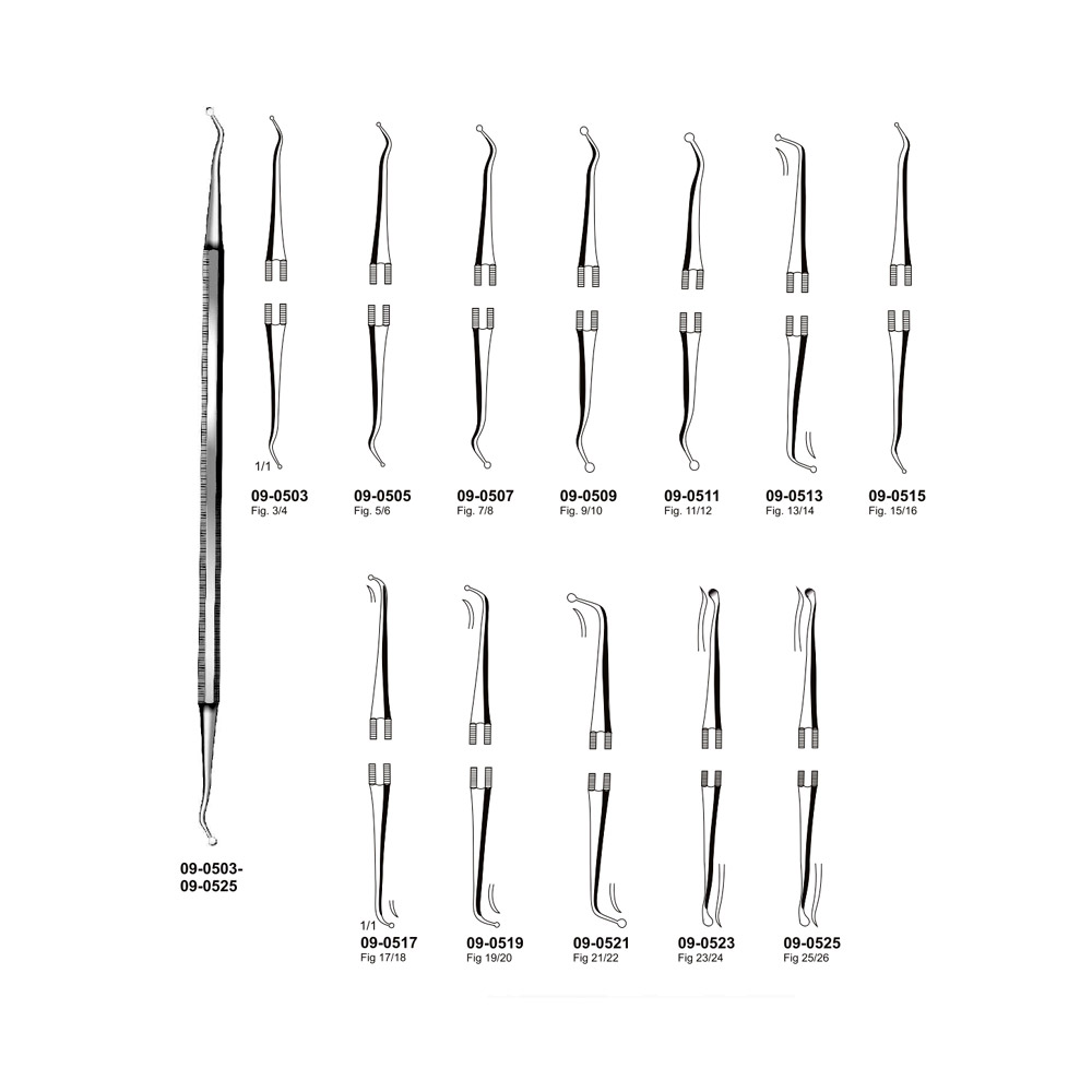 Art# SFI: 09-0503 - 09-0525 Category: Excavators, Probes & Explorers, Nerve instruments